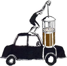 커피를 원료로 한 바이오 디젤의 연구의 시작은 이랬습니다. 약 2년전 커피를 무지하게 좋아하는 네바다 주립대학의 화학 공학 연구원인 Dr. Misra라는 사람이 커피를 마시다가 컵에 남긴뒤 하루가 지났는데 다음날 커피를 남겼던 컵에 생긴 기름막을 발견하고 커피에서 기름을 얻을수 있다는 생각에 연구를 시작했다고 합니다. 그는 동료들에게 커피로 연료를 만들수 있다는 잠재성을 알린뒤 도움을 얻어 연구를 했는데 연구의 원료가 되는 커피찌꺼기는 근처의 스타벅스에서 얻었습니다. 스타벅스는 찌꺼기를 손쉽게 버릴수 있어 기뻐하며 원료를 제공했다고 하네요.